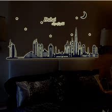 包邮巴黎之夜 家居客厅电视背景卧室浪漫温馨可移除荧光夜光墙贴