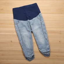 孕妇牛仔七分裤夏季薄款外穿纯棉大码孕妇马裤女夏宽松灯笼裤春秋