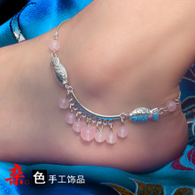 时尚韩版脚链女款 粉玉髓小鱼脚链