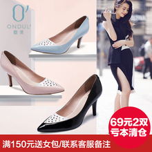 Daphne/达芙妮园漾女鞋 优雅拼色时尚尖头镂空细高跟单鞋