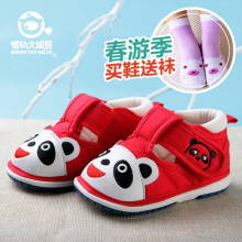 2017春季男女宝宝防滑软底原创卡通设计棉布儿童叫叫响学步鞋