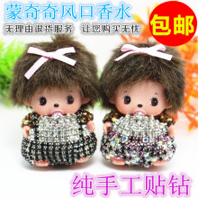 新款可爱蒙奇奇汽车出风口香水 车载空调口香熏 镶钻香水夹钻包邮