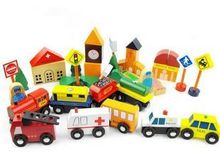 特价 火车玩具轨道 磁性小车城市积木32片木制儿童玩具 男女孩