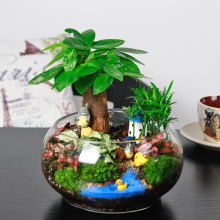 L发财树微景观植物创意盆栽苔藓植物迷你盆栽办公桌摆件diy盆栽