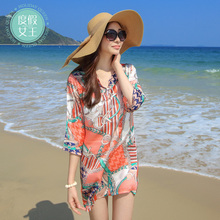 度假女王夏季新款女装显瘦印花短袖连衣裙宽松短裙海边沙滩裙