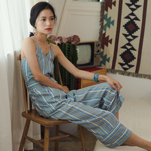 度假女王夏季度假沙滩裤吊带连体裤露背波西米亚条纹阔腿裤九分裤