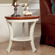 地中海田园实木小圆桌 电话几 白色圆几茶几沙发边几咖啡桌洽谈桌