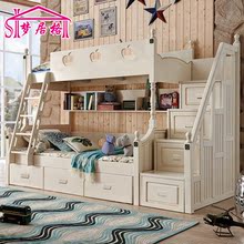 实木儿童床地中海子母床多功能组合床男女孩储物床美式乡村衣柜床