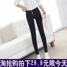 2016春秋新款排扣牛仔裤女长裤修身小脚裤高腰学生显瘦弹力女裤潮