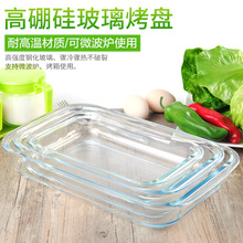 加厚微波炉烤箱专用烤盘长方形高硼硅玻璃鲍鱼盘耐热蒸鱼盘子