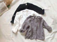 特惠 韩国童装 男女儿童宝宝宽松纯色竹节棉套头打底衫 百搭T恤