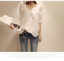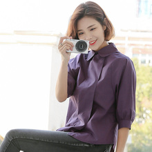 2016春装韩版女装气质百搭宽松灯笼袖打底衬衫中袖衬衣女k96btw