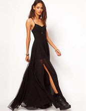 欧美外贸大牌风双层设计宽大裙摆落地裙 黑色吊带长裙雪纺裙#