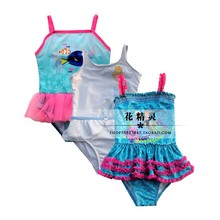 外贸女童儿童温泉游泳衣中大童泳帽防晒连体分体泳裤公主裙式泳装