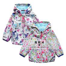 春秋款童装女童儿童卡通薄款外套小中童韩版花色印花风衣上衣