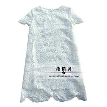 夏款女童白色短袖连衣裙女中大童水溶花蕾丝礼服裙公主裙4-13Y