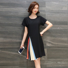 雪侬胖妹妹大码女装夏装胖mm连衣裙2017新款撞色蝙蝠袖200斤显瘦