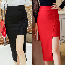 2017春夏新款中长款开叉性感包臀裙高腰修身半身裙