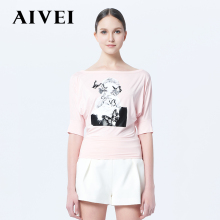 AIVEI 欣贺艾薇女装春夏新品 个性涂鸦一字领T恤J0160030设计师款