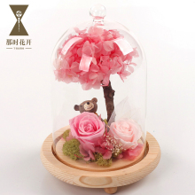 【顺丰包邮】永生花礼盒玫瑰花玻璃罩小熊保鲜花永生花生日礼物Y