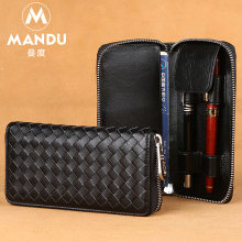曼度真皮笔套笔包牛皮编织签字笔钢笔包多功能录音笔包可调笔位