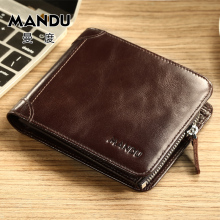 曼度男士钱包真皮短款青年竖款休闲复古日韩头层牛皮男多功能皮夹