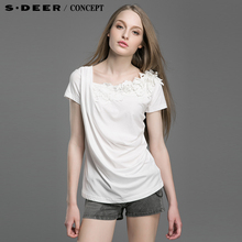 sdeer圣迪奥专柜正品女装夏装素雅立体花拼叠短袖T恤S14280154