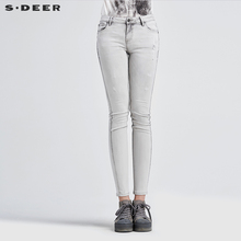 【新品】sdeer圣迪奥女装做旧猫须休闲修身小脚牛仔裤夏S16280809