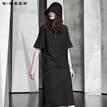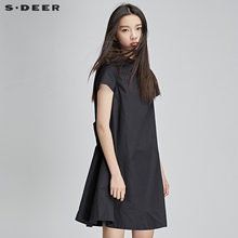 【新品】sdeer 圣迪奥女装纯色A廓圆领穿带连衣裙S17281222
