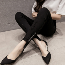 夏季显瘦弹力打底外穿黑白色膝盖破洞牛仔女小脚九分高腰铅笔裤子
