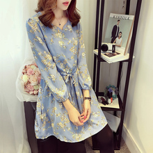 加肥加大码女装2016春秋新款胖MM显瘦碎花雪纺连衣裙收腰打底裙