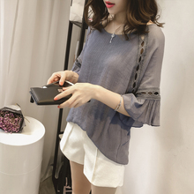 胖mm夏装雪纺衫2016新款大码镂空荷叶边甜美宽松上衣五分袖t恤夏