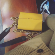 SukiShe 范冰冰同款牛皮真皮黄色双面链条包锁扣包小方包简约百搭