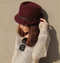 【Brightlele】帽子 毛昵礼帽女卷边爵士帽春季遮阳帽平顶帽 实拍