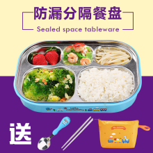 婴儿童餐盘分隔餐盒不锈钢餐具宝宝吃饭碗便当盒密封学生双层饭盒