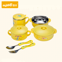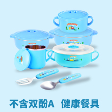 蔓葆 儿童餐具套装碗勺叉组合装 婴儿不锈钢碗吸盘碗套装