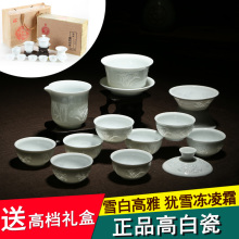 奈斯德化高档白瓷整套功夫陶瓷玲珑茶具套装三才盖碗过滤茶杯特价