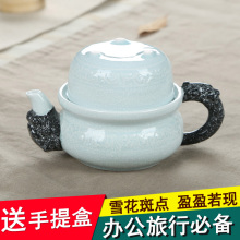 奈斯龙泉雪花青瓷快客杯一壶一杯旅行办公便携陶瓷功夫茶具个人杯