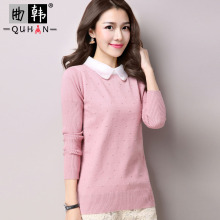 娃娃领毛衣女套头宽松大码2017春季新款薄款时尚百搭打底衫针织衫