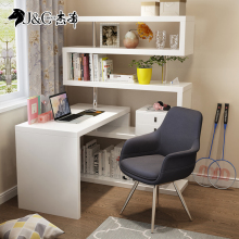 杰希 电脑桌书架板木书桌书柜组合创意学生书柜 可旋转书桌置物柜