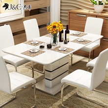 杰希 现代简约餐桌椅组合6人 北欧时尚烤漆餐桌餐台家用吃饭桌子