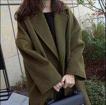 2017新款韩版复古宽松廓形长款加厚秋冬毛呢大衣女中长款呢子外套