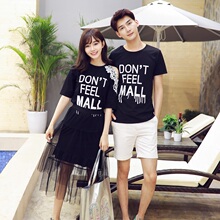 情侣装夏装2017新款新款韩版短袖T恤韩范连衣裙夏季女裙情侣衫潮