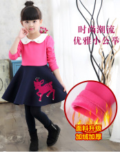 2016女童女宝宝冬款加绒加厚连衣裙拼接裙娃娃领加绒连衣裙