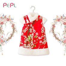PEPL 女童2016冬季新款民族风儿童加绒加厚旗袍裙保暖背心裙潮