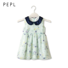 PEPL 韩版女童夏季背心裙女童印花雪纺娃娃领全棉内衬连衣裙薄夏