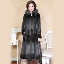 大码水貂皮草女妈妈装显瘦加肥加大长款长袖连帽貂皮大衣整貂胖mm