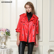 pu中长款皮衣外套韩版女装 oversize 2017春宽松显瘦大码皮风衣女