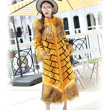 冬季2016走秀款长款皮草大衣女时尚个性仿狐狸毛兔毛拼接撞色外套