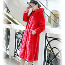 海宁女貂皮大衣整貂2016秋冬 长款长袖连帽宽松大码水貂皮草外套
